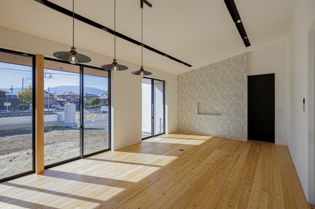 大胆な見せ梁で、どこから眺めても木の魅力を感じる大空間を実現。 平屋でありながら暮らせるロフトが広いことが最大の特徴。