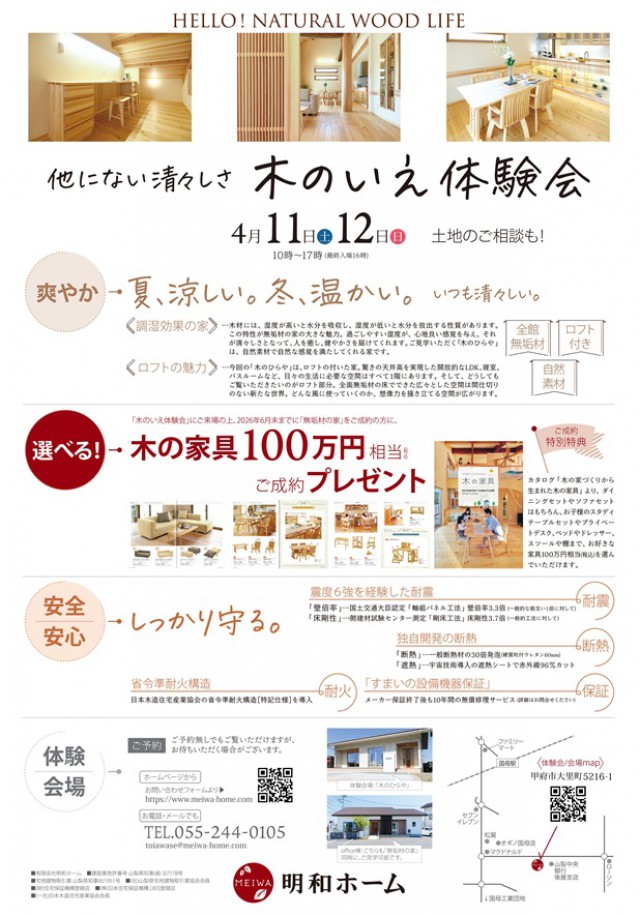 ぜひご来場のうえ 無垢の家の快適さと、空気の美しさを感じ取ってください。